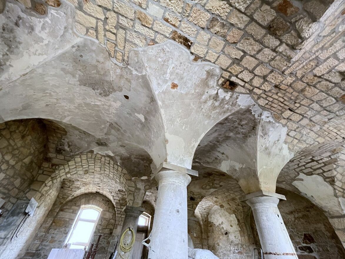 Sala bankietowa na parterze urzeka klimatem - dominują tu naturalna cegła i kamień, które tworzą mocny, ponadczasowy styl. Ściany z widoczną strukturą materiału dodają przestrzeni charakteru i wyjątkowości.